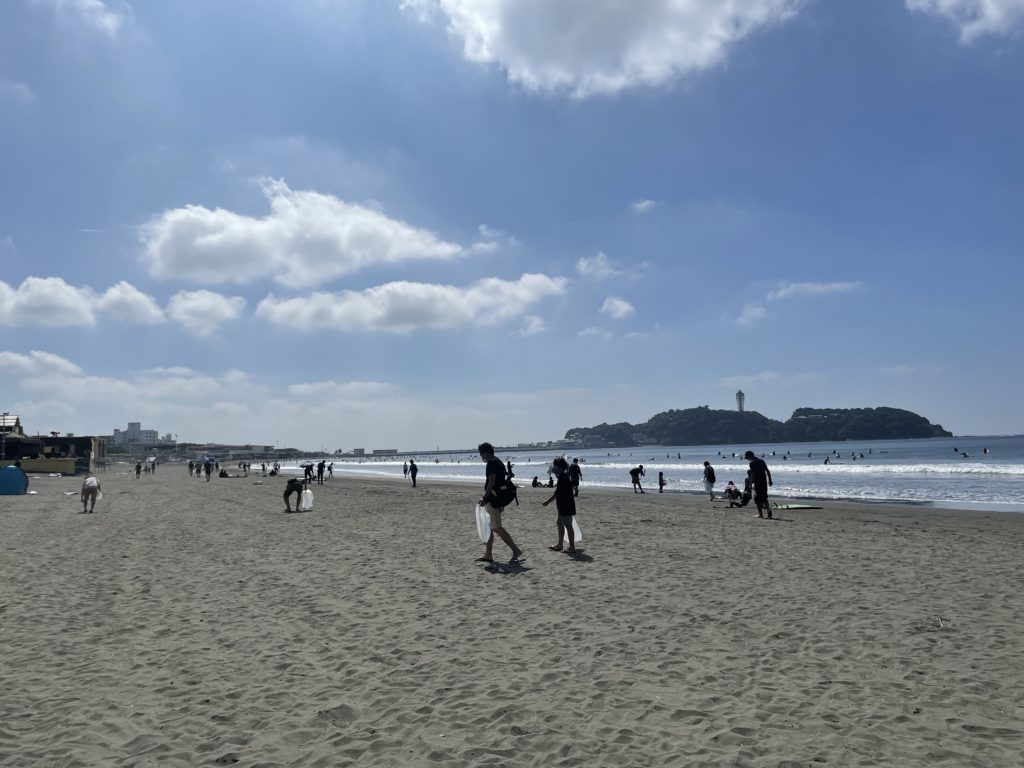 海岸は、いつもの様に(←ココ大事)綺麗でしたが、細かいプラスティックはやっぱりあります。片瀬海岸や鵠沼海岸の浜辺は、日常的に散歩を兼ねてゴミ拾いをしてくださる方や、波乗り後に拾って帰ってくれるサーファー、もちろん業者さんも入っての清掃活動をして下さるおかげで、風や波で大量のゴミが漂着しない限りはいつも綺麗になってます😊