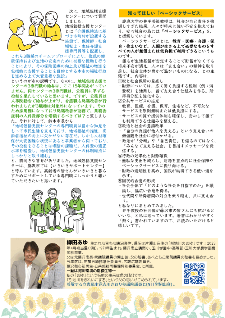 新しい議会報告「ひまわり通信」No.5ができあがりました。